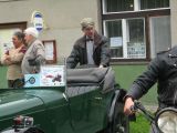 herčka paní Asterová při odjezdu v historické sajdkáře